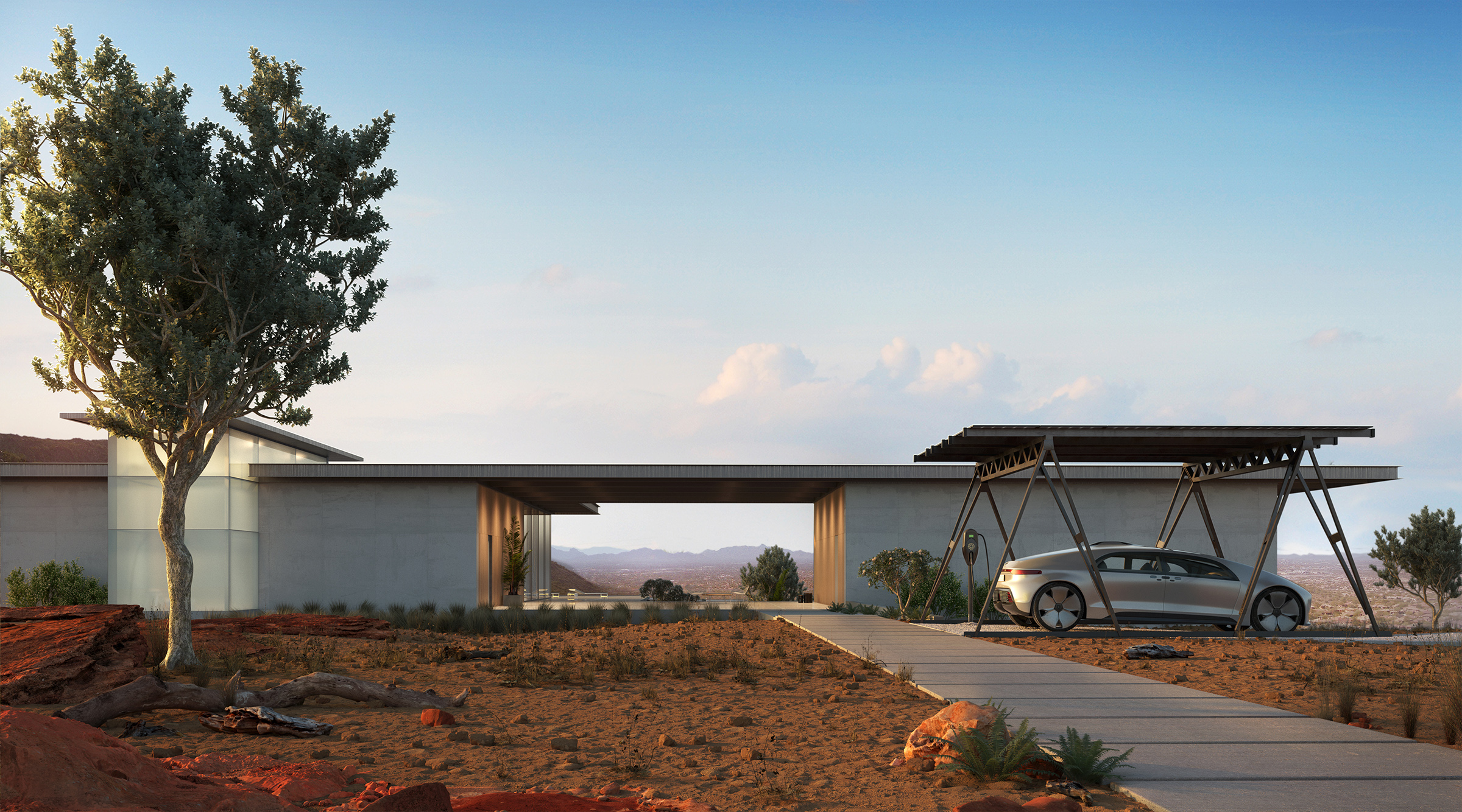 Renderings for a solar canopy retro-fit product.